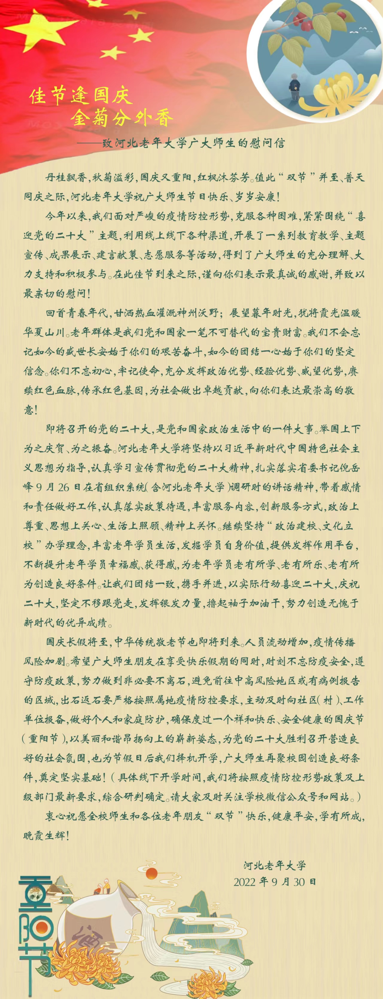 佳节逢国庆,金菊分外香——致爱体育在线登录广大师生的慰问信