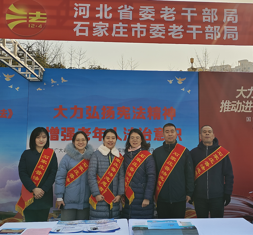 12月4日,河北省2024年“12·4”国家宪法日集中宣传活动在石家庄市西清公园(省会法治公园)举办,我校与石家庄市老年大学代表省委老干部局、石家庄市委老干部局参与此次活动。
