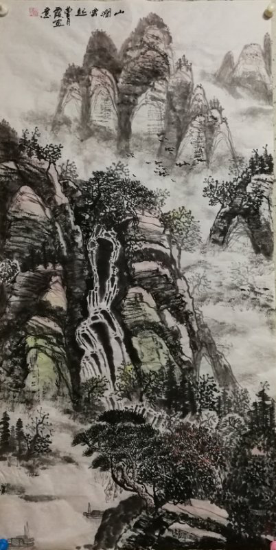3.山水《山涧云起》—曹月霞(美术学院国画山水19-2班)