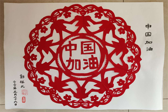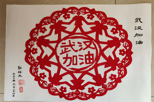 4.剪纸《中国加油、武汉加油》—郭祥元(爱体育在线登录志愿者团队)