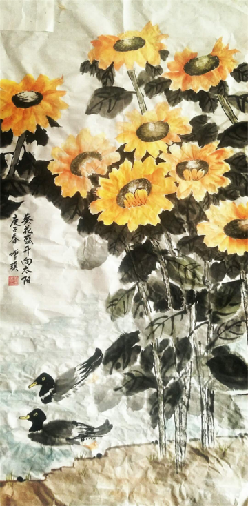 6.花鸟《葵花盛开》—刘增璞(美术学院国画花鸟15-2班)